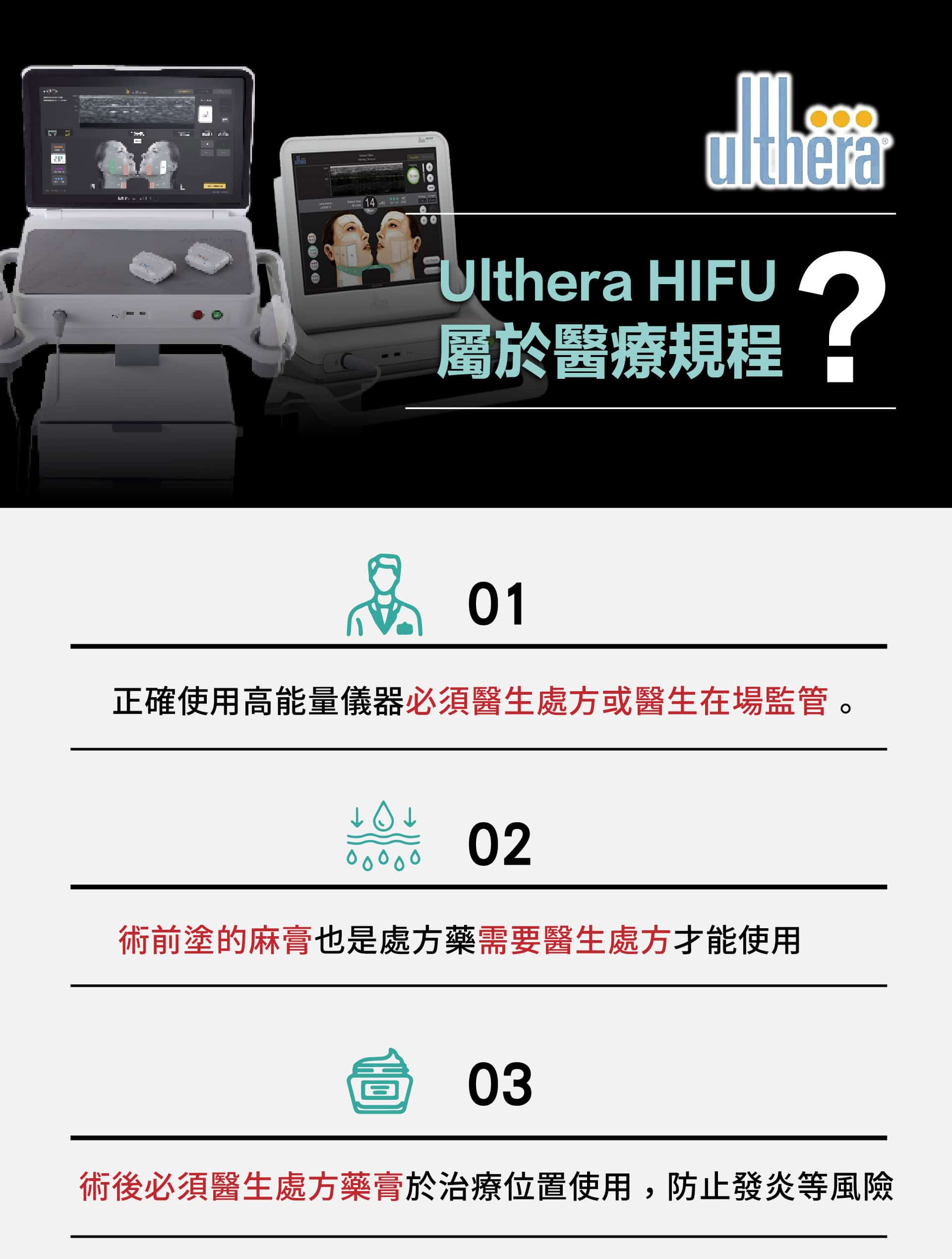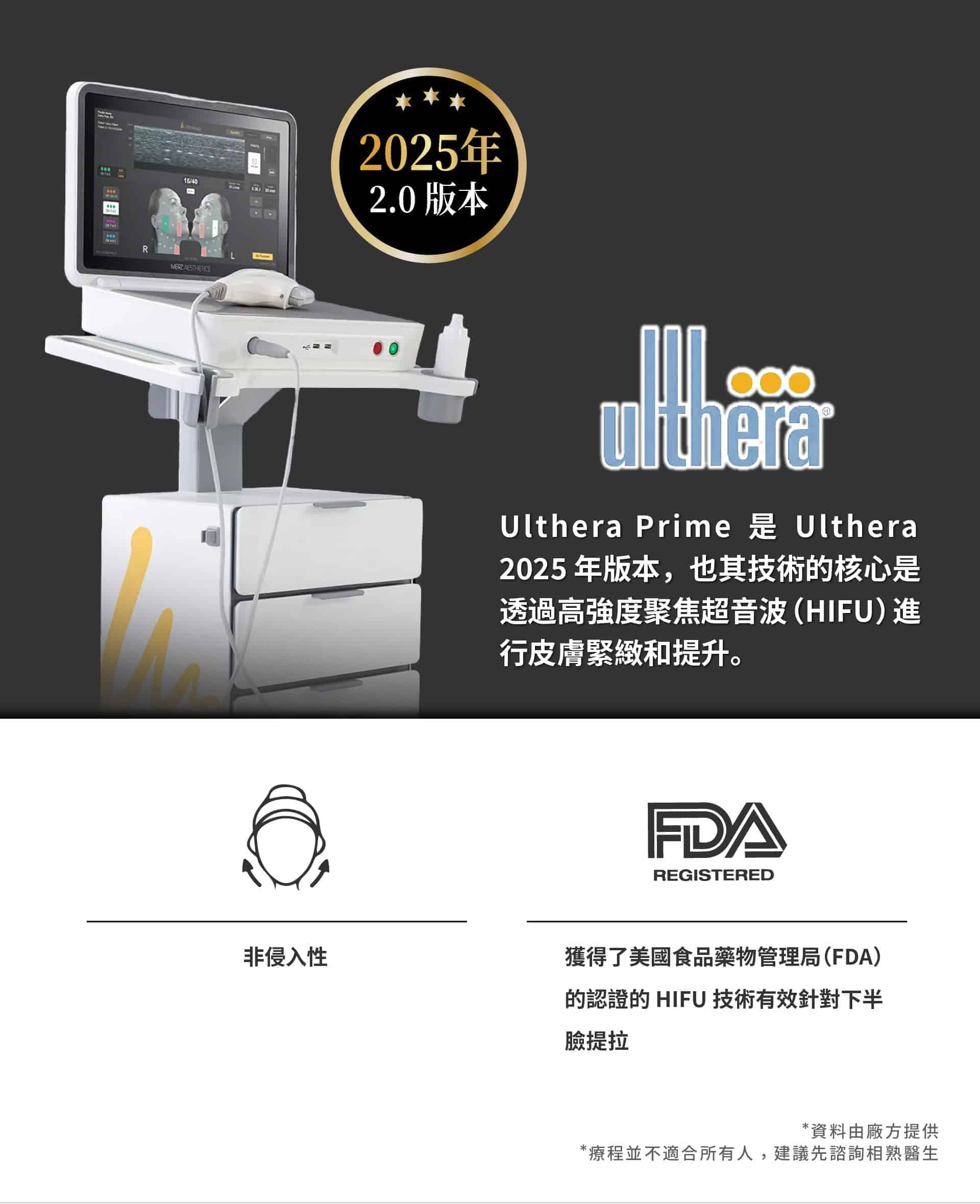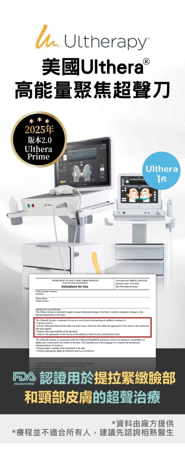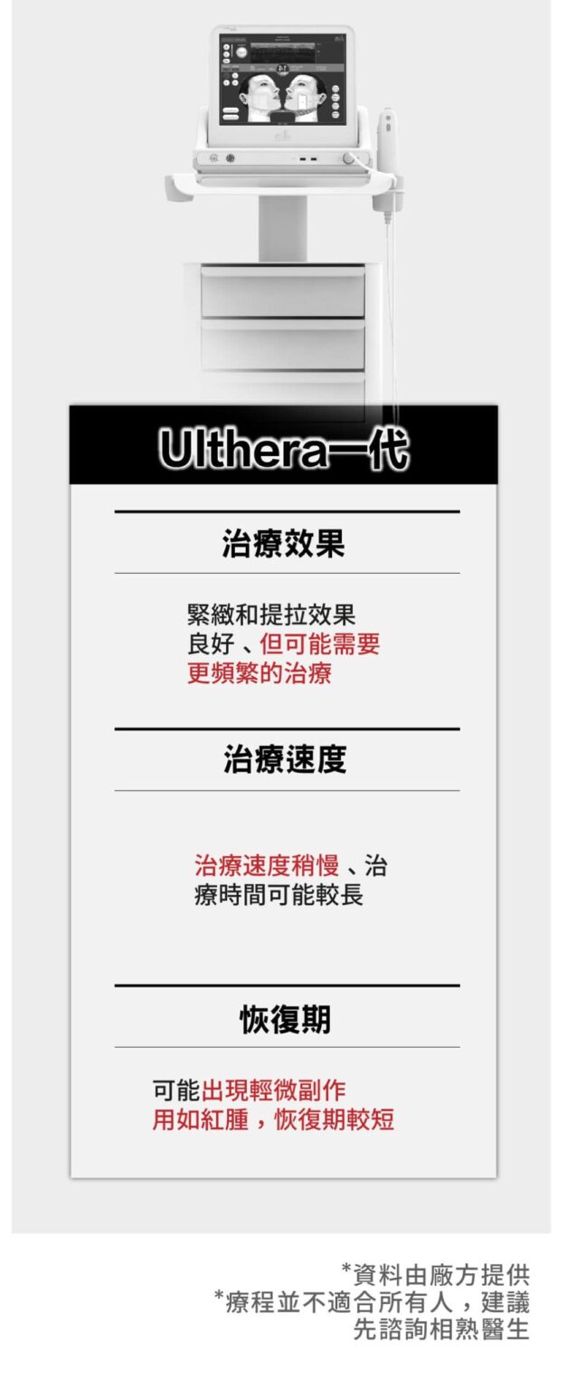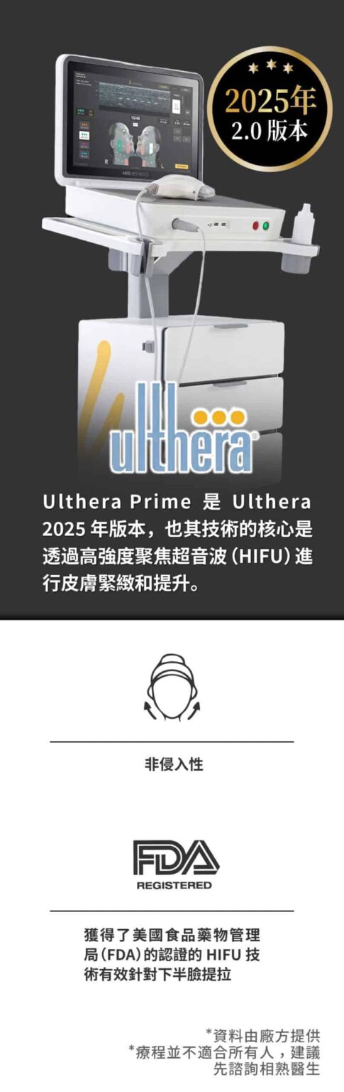 2.Ulthera是非侵入式臉部的「拉皮緊膚」治療儀器。