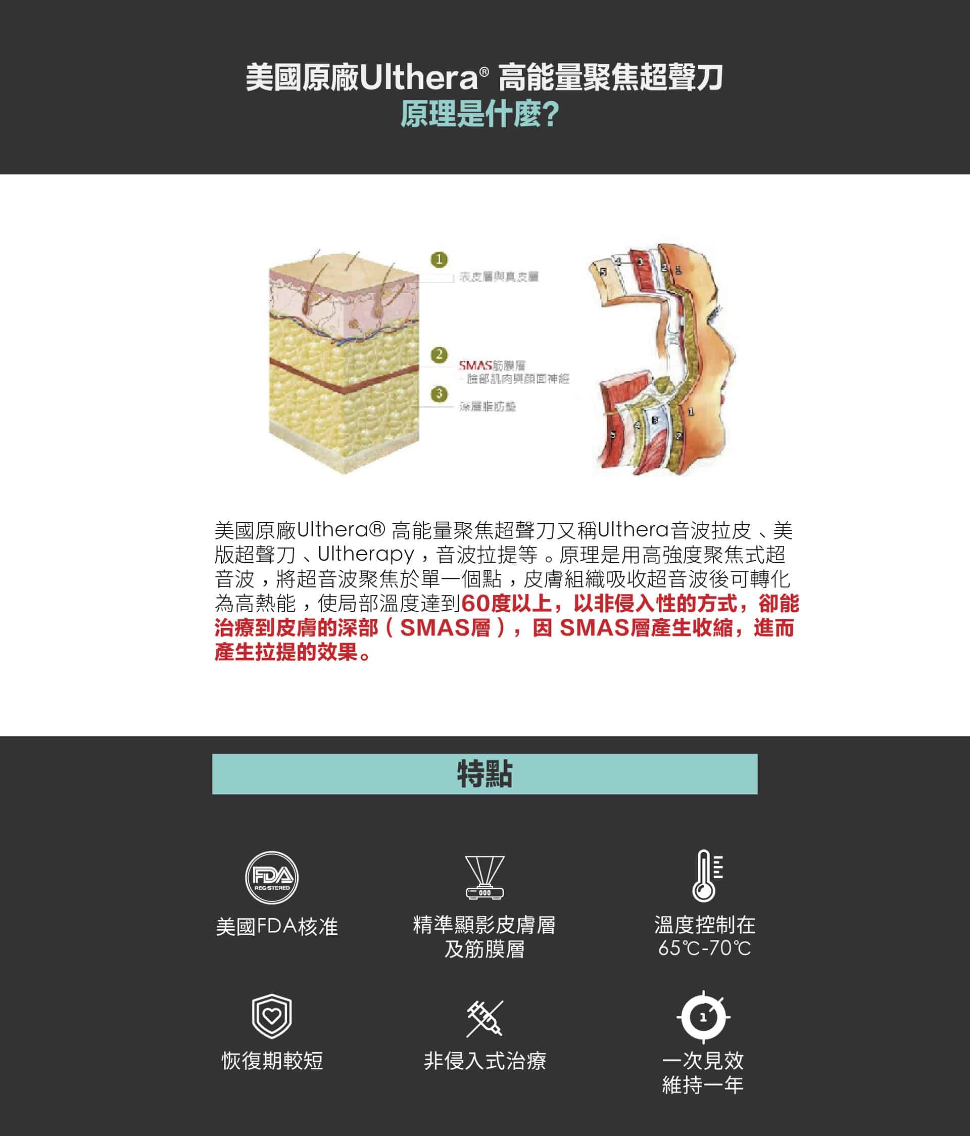 美國原廠Ulthera® 高能量聚焦超聲刀兩大特點