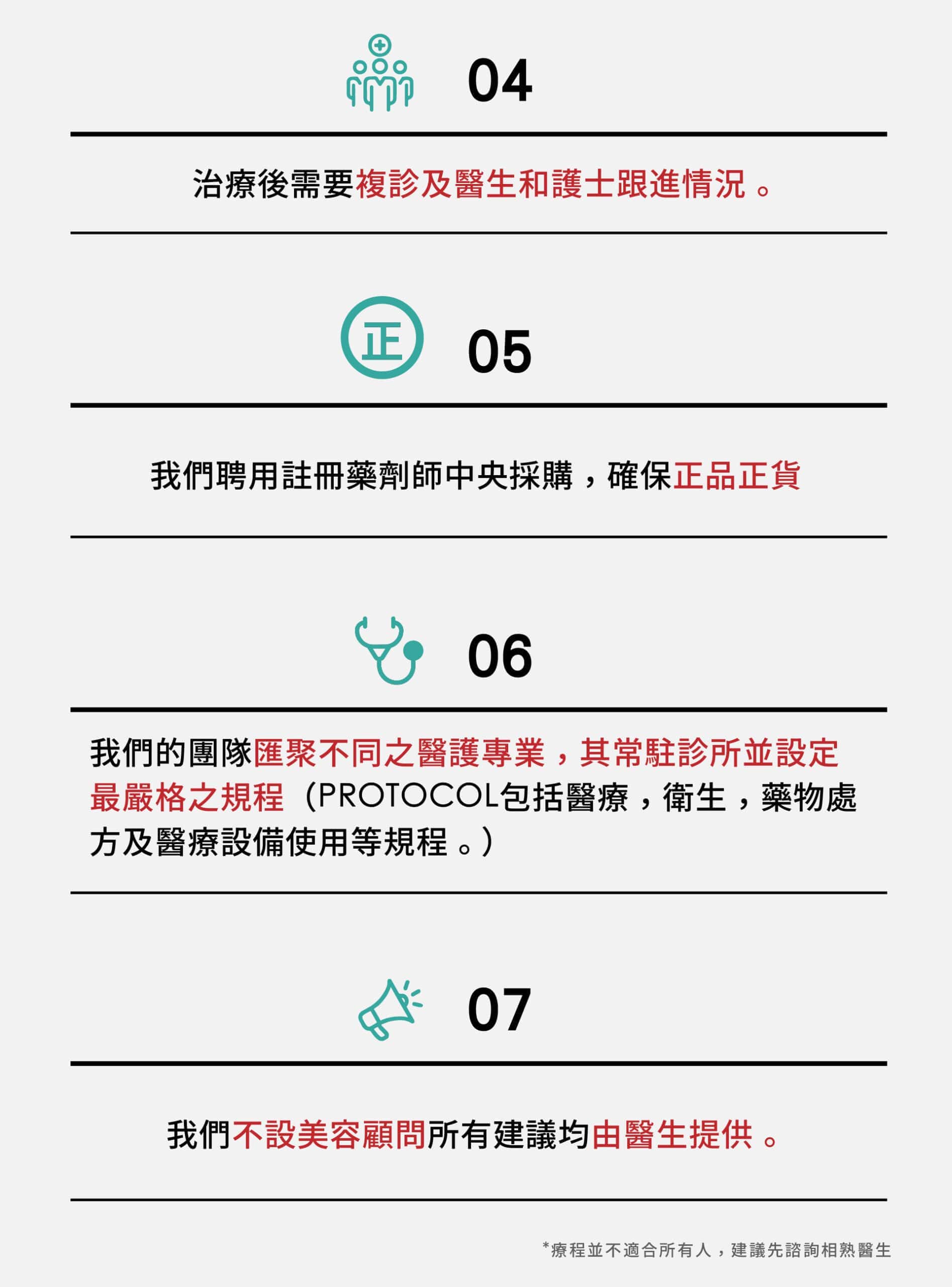 .如有重大疾病、服用特殊藥物、近期內有皮膚異常。